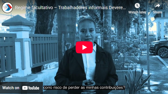 Regime facultativo – Trabalhadores informais (Deveres, Obrigações, Direitos e Benefícios). Campanha Sensibilização da Segurança Social promovida pelo Instituto Nacional de Segurança Social de Timor-Leste