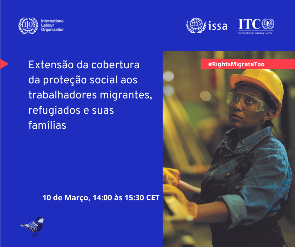 Inscreva-se neste webinar, que apresentará o Guia sobre Extensão da Proteção Social aos Trabalhadores Migrantes, Refugiados e suas Famílias e fornecerá uma visão geral das opções políticas e administrativas que podem ser consideradas para estender a proteção social aos trabalhadores migrantes, refugiados e suas famílias. Será apresentado um número selecionado de práticas nacionais e regionais que podem inspirar os países ao se envolverem em reformas legais, negociar acordos de seguridade social e projetar esquemas de proteção social.